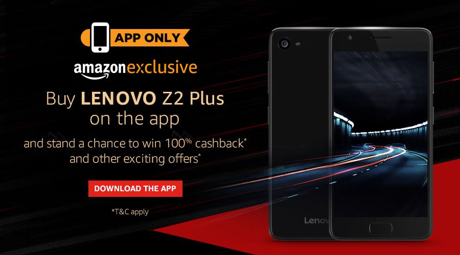 - Gain 100% cashback on Purchasing Lenovo Z2 Plus along amazon App